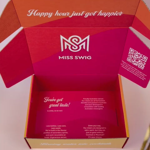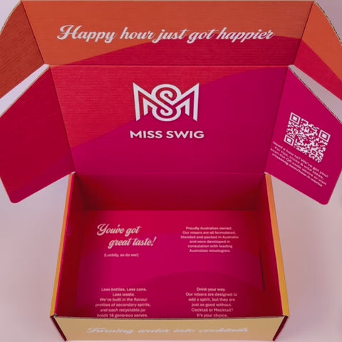 The Core Collection gives you the entire MISS SWIG range in one go — no choosing, no second-guessing. It’s the smartest way to stock your bar and enjoy every flavour we make, all at a bundled value advantage.